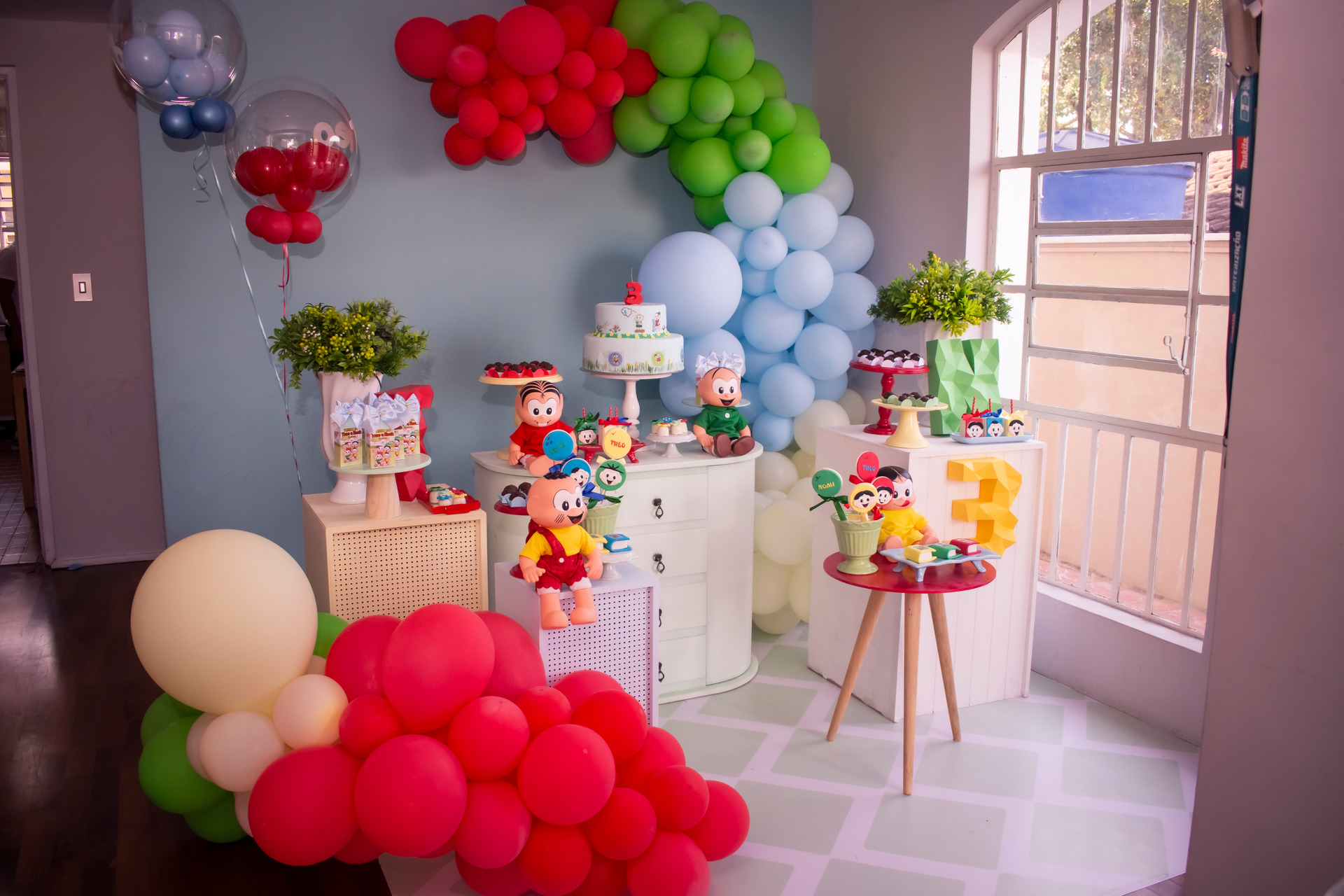 Por trabalharmos com exclusividade, montamos qualquer tema, seja ele clássico ( Disney, circo, star wars,...), contemporâneo ( Mundo Bita, galinha pintadinha e etc), ou sem tema ( apenas cores, bexigas, ponpons, props e etc).
