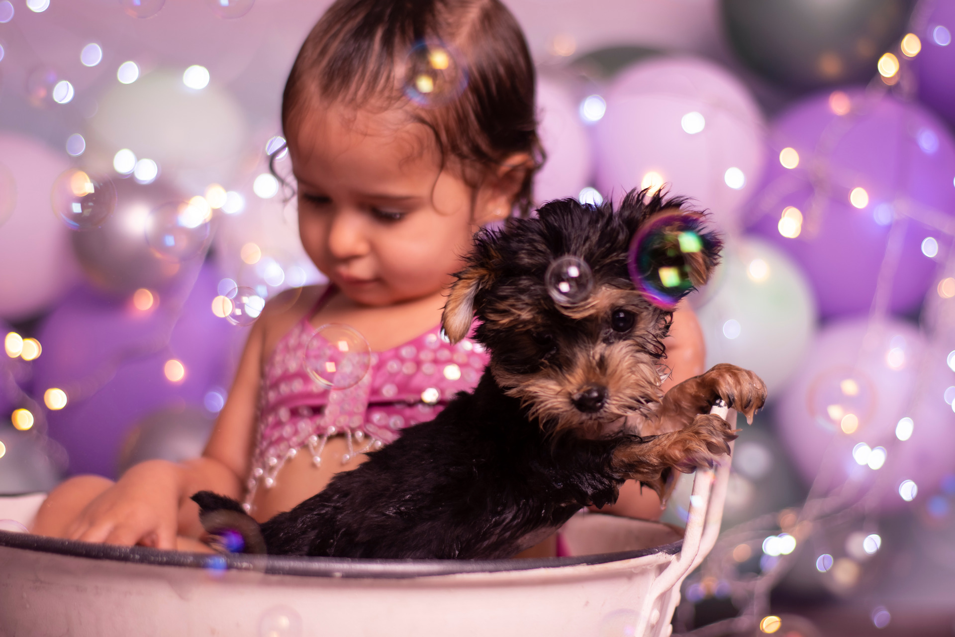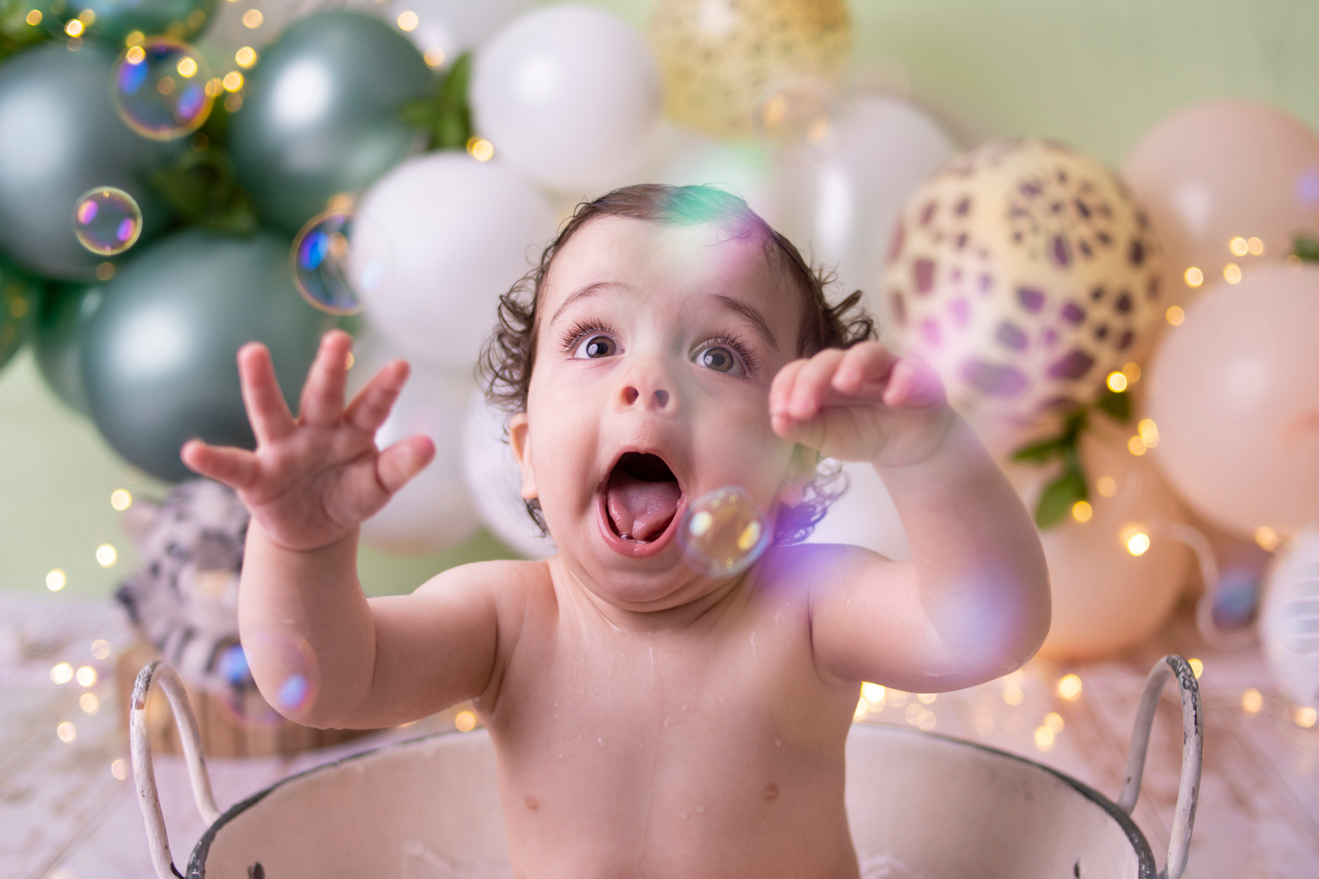 O momento de descontração do banho agrega mais fotos lindas ao ensaio, e as brincadeiras durante todo ele trazem sorrisos lindos.